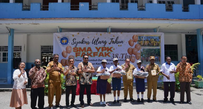 Pemerintah Kabupaten Fakfak melalui Dinas Pendidikan kembali menunjukkan perhatian terhadap dunia pendidikan dengan menyerahkan bantuan seragam sekolah gratis kepada para peserta didik SMK YPK Fakfak. Penyerahan tersebut berlangsung di halaman sekolah dalam rangka perayaan Hari Ulang Tahun (HUT) ke-38 SMK YPK Fakfak.