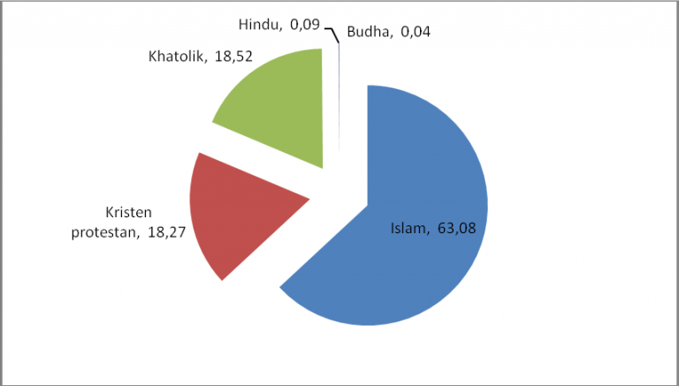 Jumlah fasilitas peribadatan yang telah terbangun berupa masjid berjumlah 107 unit, Mushalla 6 unit, Gereja Protestan 82 unit, Gereja Khatolik 29 unit, Klenteng 1 unit, dan Pura 1 unit. Seluruhnya fasilitas peribadatan berjumlah 226 hingga tahun 2017 yang tersebar.