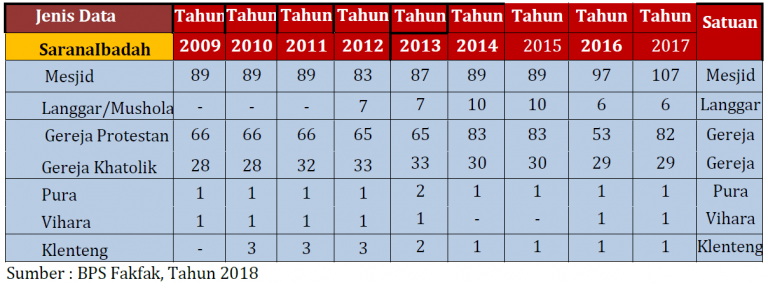 Kondisi Fasilitas Peribadatan Di Kabupaten Fakfak
