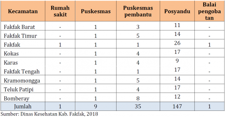 Meskipun Pemerintah telah membangunsarana dan prasarana kesehatan, seperti puskesmas, pustu dan polindesdi distrik dan kampung, namun sarana kesehatan terus dilakukan peningkatan untuk memperbaiki layanan kualitas kesehatan.